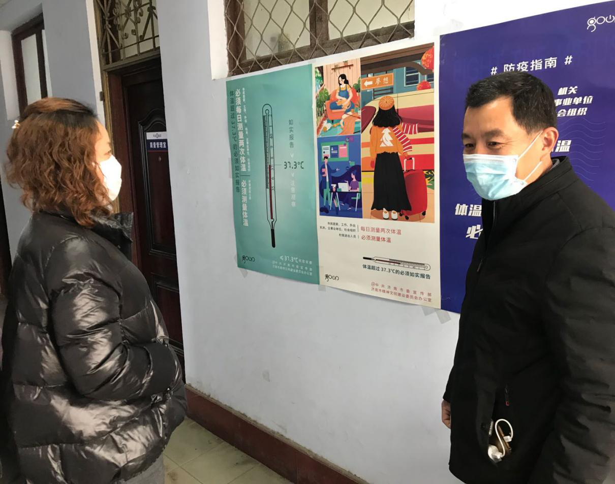 单位迅速排出3月份值班表,并对值班人员的工作流程和自身防护提出了要求,值班人员由部门指定专人负责,每天值班人员提前20分钟上班,做好准备工作。单位只留一个出入口在一楼入口处设立检查点,上班人员下载济南健康易通行APP,上班时由值班人员扫描、测温。为做好外来人员防控工作,值班人员专人负责外来人员的登记、测温或者扫描济南健康易通行APP(身份证)、测温,明确所去部门,由部门派人来一楼接人。另外,在办公场所实行每天两次消毒,对消毒场所、区域范围,消杀物品种类、喷洒人进行专门记录,同时各部门也做好两测温、两消毒、记录台账,确保防控工作不出一丝纰漏。