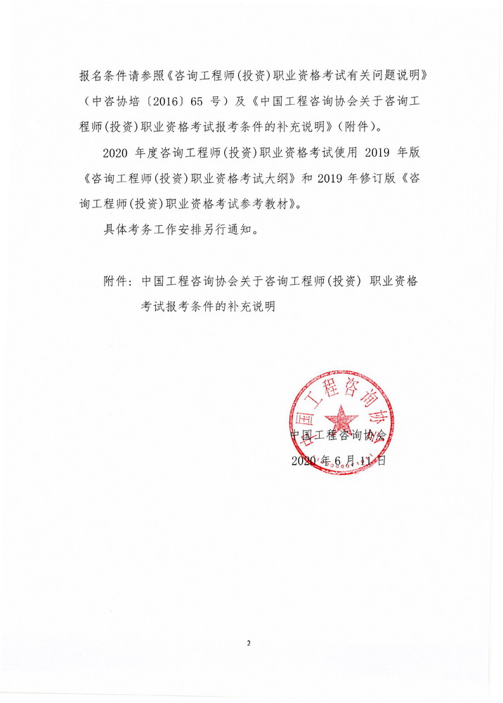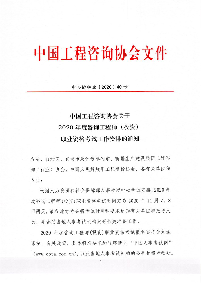 中国工程咨询协会华体会网页版最新登录2020年度咨询工程师(投资)职业资格考试工作安排的通知